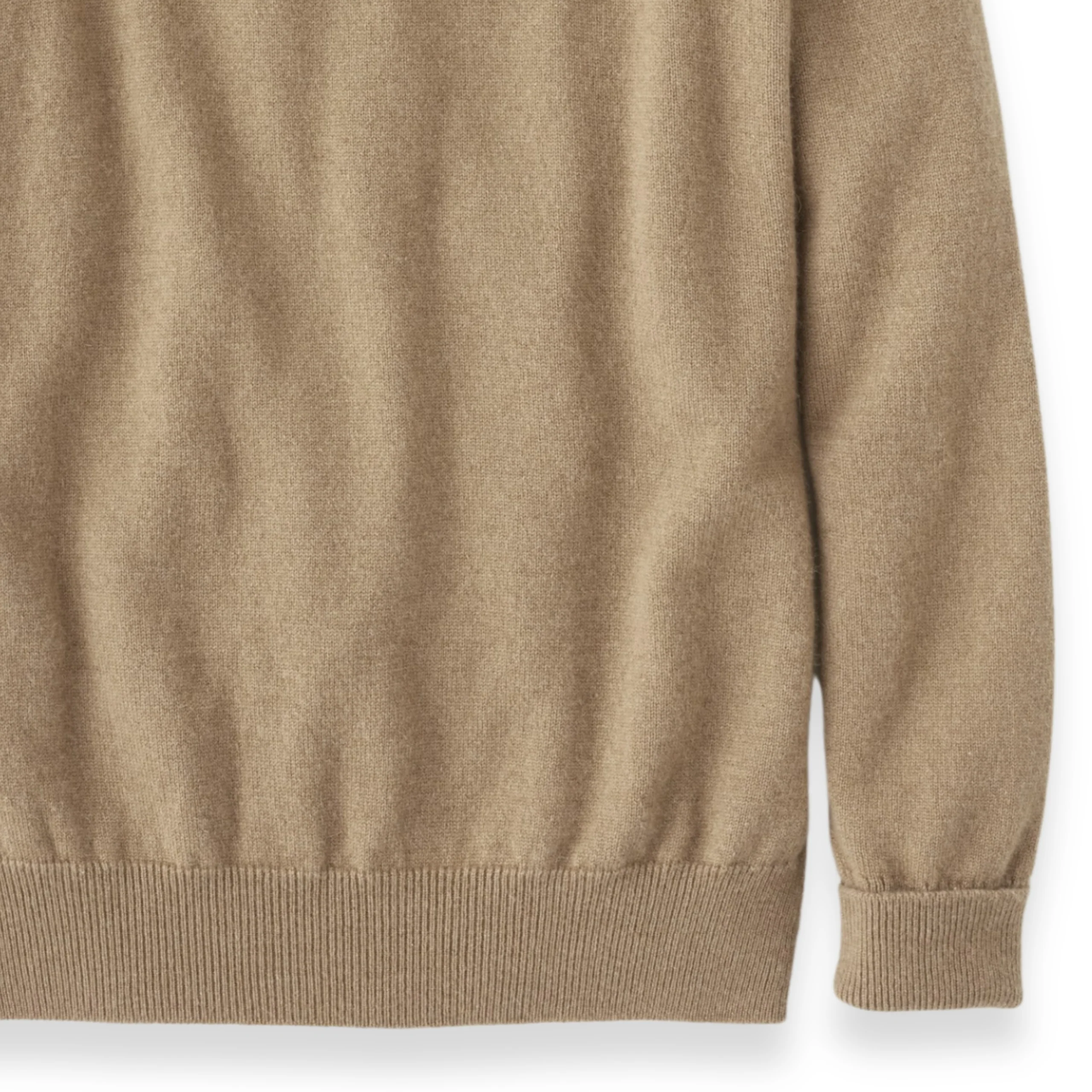 Experience the warmth and texture of our two-ply men’s crew neck camel hair sweater. Knit in Hawick, Scotland, expressly for The Lanam Shop, this 100% camel hair sweater is a classic addition to a refined wardrobe. Utilizing hair from the soft underbelly of the Two-Humped Bactrian Camel, the pure camel hair yarn is spun by Z. Hinchliffe & Sons of Yorkshire, England. The camel hair used for this men’s crew neck sweater is undyed and undergoes a minimal manufacturing process, thus maintaining its naturally soft texture. This men’s camel hair sweater is knitted using antique machines, and careful attention to detail is evident throughout the 30-step manufacturing process — much of which is finished by hand. It is hand-framed & linked, features hand-sewn finishings, and is washed with soft water from The River Teviot. Richly appointed details include a saddle shoulder, royal ribbed cuffs & waistband, and a hand-linked collar. Offered in our signature undyed finish, this camel hair sweater will provide cozy warmth and tasteful styling for many years to come. Handcrafted in Scotland of 100% camel hair yarn.