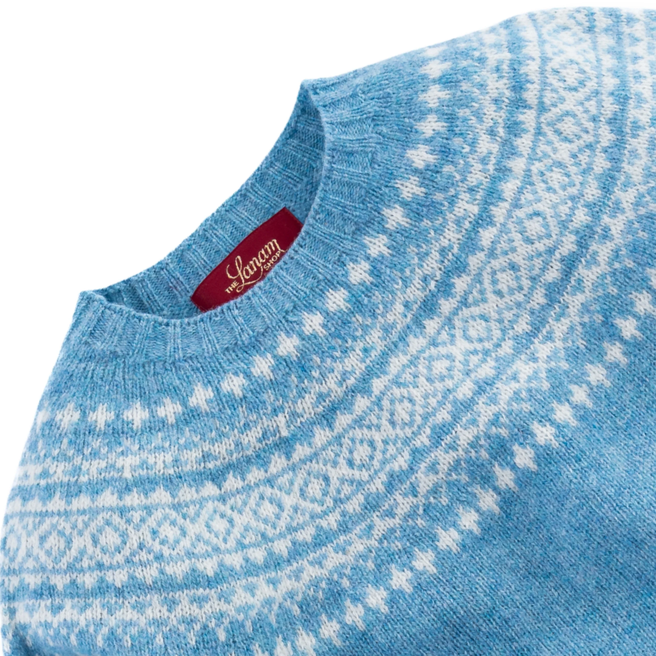 Two-Tone Fair Isle Shetland Wool Crew Neck Sweater